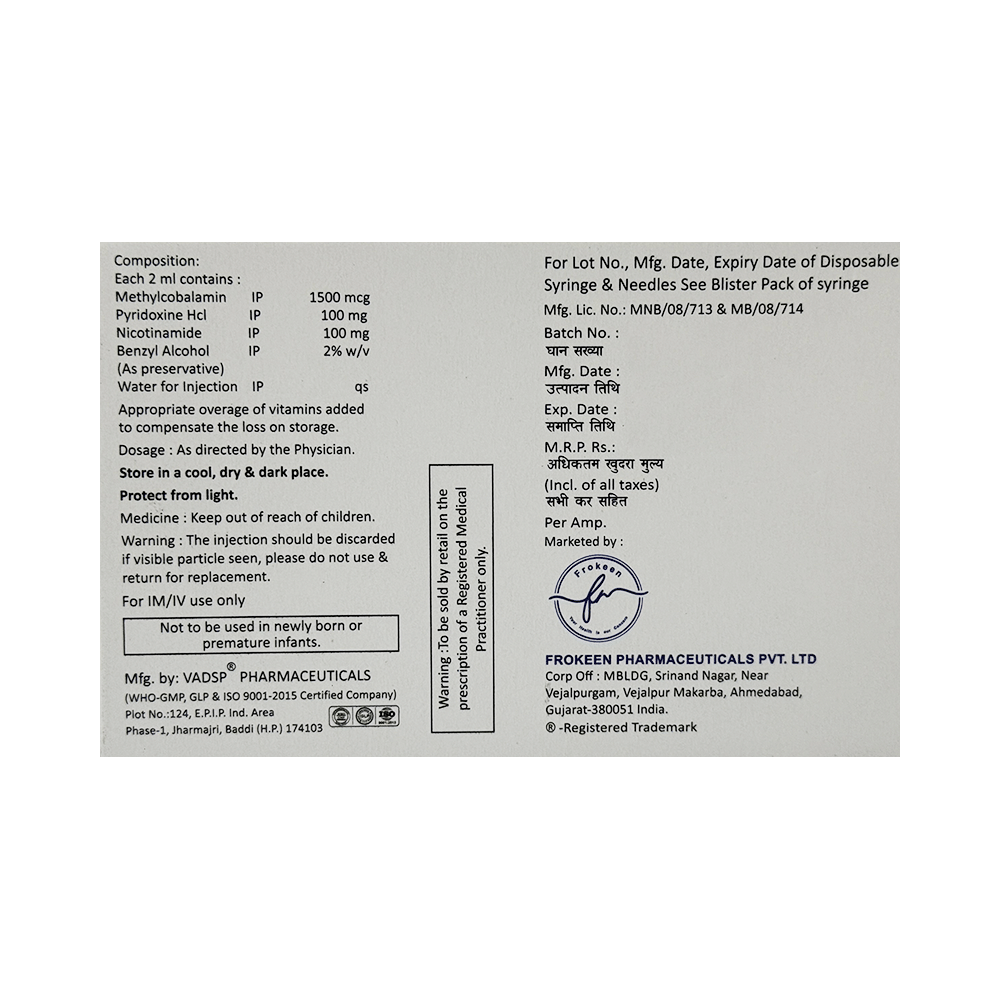 Salt Composition: Methylcobalamin (1500mcg/2ml) + Vitamin B6 (Pyridoxine) (100mg/2ml) + Nicotinamide (100mg/2ml)