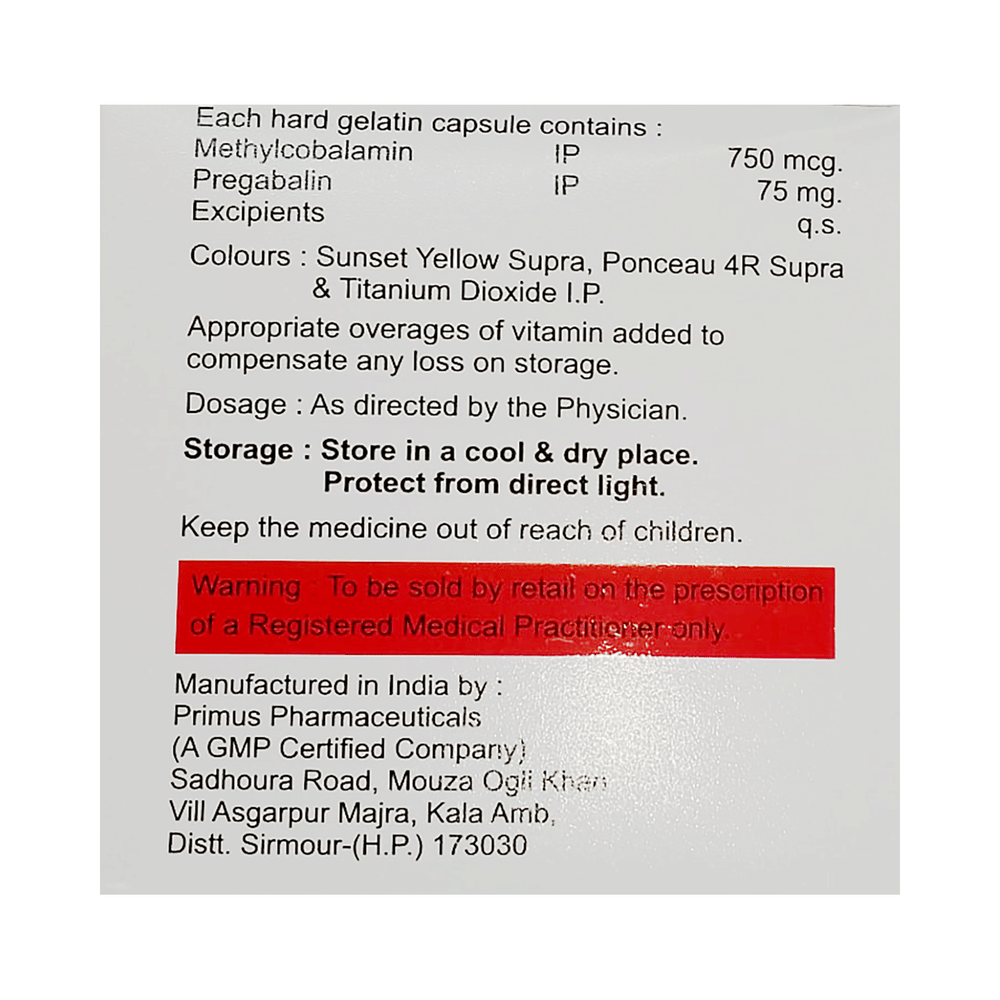 Salt Composition: Methylcobalamin (750mcg) + Pregabalin (75mg)