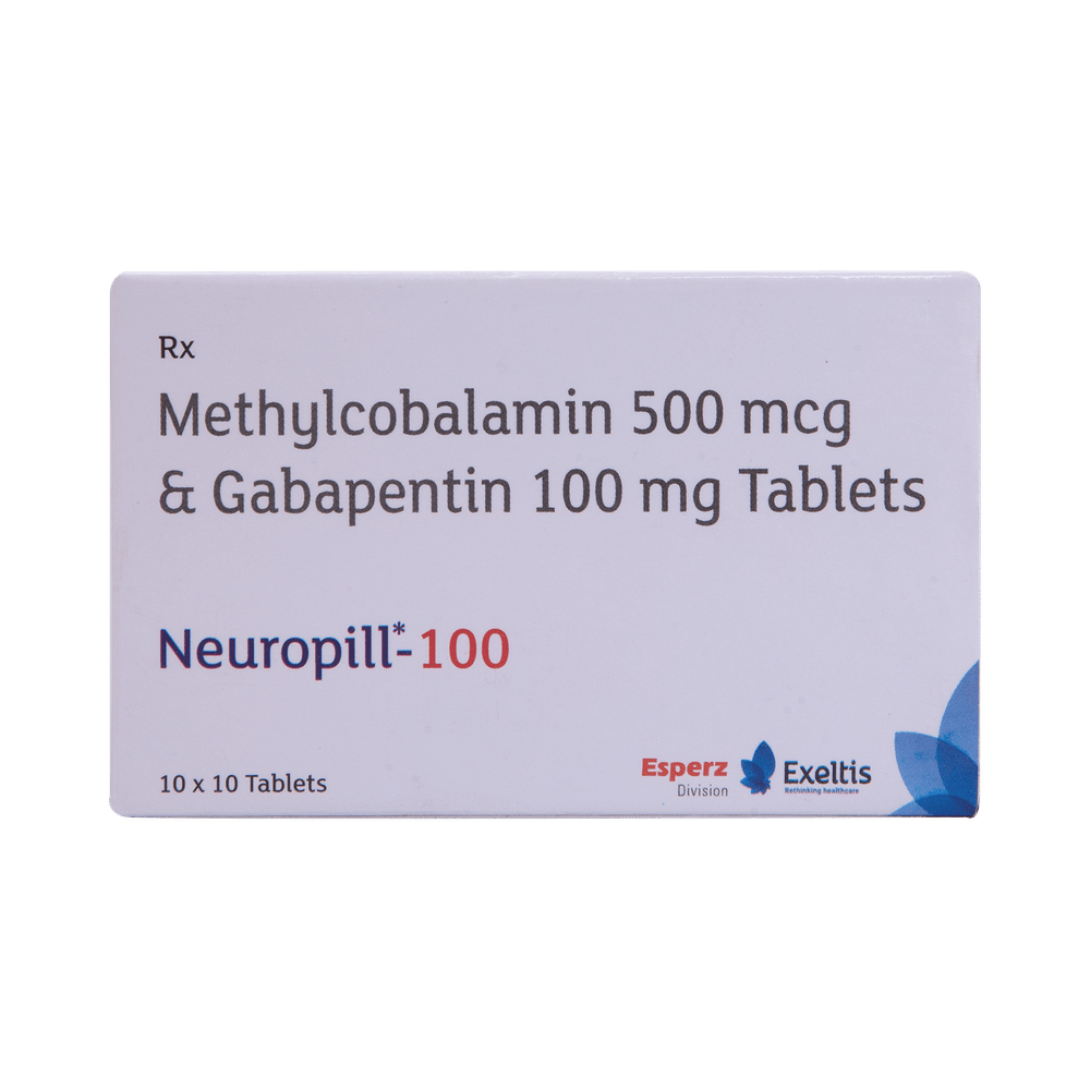 Neuropill 100 Tablet is a combination medicine used for the treatment of neuropathic pain. This medicine decreases pain by modulating calcium channel activity of the nerve cells. Neuropill 100 Tablet is taken by mouth with or without food, preferably at bedtime. It is advised to take medicine at the same time each day as this helps to maintain a consistent level of medicine in the body. Take this medicine in the dose and duration advised by your doctor. If you miss a dose of this medicine, take it as soon as you remember. Finish the full course of treatment even if you feel better. It is important that this medication is not stopped suddenly without talking to the doctor.Some common side effects of this medicine are nausea, peripheral edema, ataxia, blurred vision, fever and nystagmus (involuntary eye movement). It may also cause dizziness and sleepiness, so do not drive or do anything that requires mental focus until you know how this medicine affects you. It is important to inform your doctor if you develop any unusual changes in mood or behavior, new or worsening depression, or suicidal thoughts.Before taking the medicine you should tell your doctor if you are pregnant, planning to become pregnant, or breastfeeding. It can usually be mixed safely with other medicines but some drugs (including antacids and alcohol) do affect the way it works and can increase the chance of side effects.
