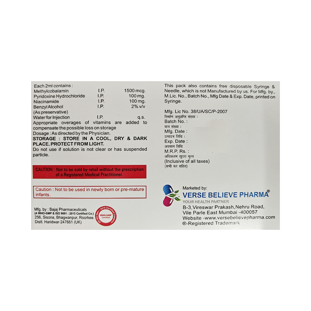 Neurovers-Plus Injection is a combination of three nutritional supplements: Methylcobalamin, Niacinamide and Vitamin B6 (Pyridoxine), which replenishes the body's stores of important nutrients.
