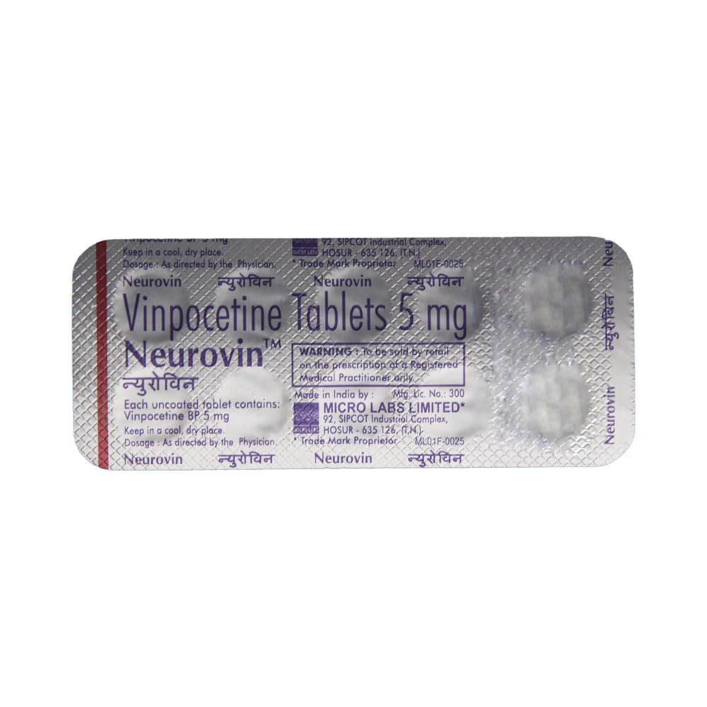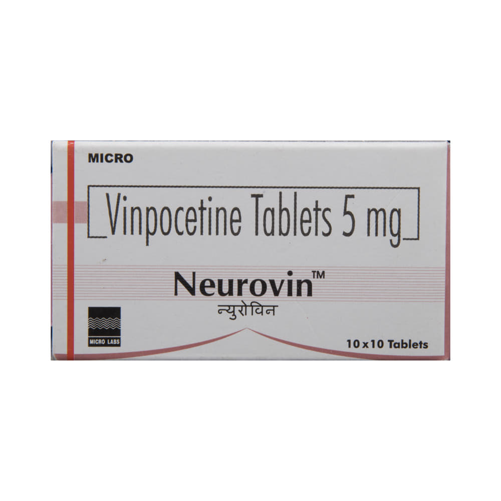 Neurovin Tablet is semisynthetic alkaloid. It has a nootropic (protects nerves and the brain) effect. It inhibits the voltage-dependent neuronal sodium channels, which in turn enhances a chemical messenger (intracellular cGMP levels) in the brain. Thus, increases blood flow within the brain. This is how it prevents the destruction of never cells (neurons) and protects the brain. Thus, helps enhancement of the nervous system. It also has an antioxidant property. This works by oxidizing the free radicals (toxins) in the body.