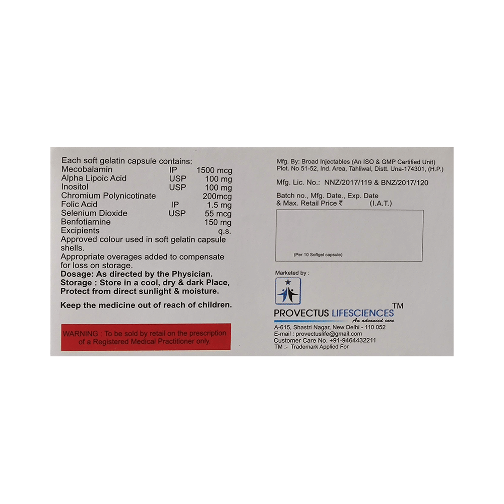 Salt Composition: Methylcobalamin (1500mcg) + Alpha Lipoic Acid (100mg) + Myo-Inositol (100mg) + Folic Acid (1.5mg) + Chromium Picolinate (200mcg) + Selenium (55mcg) + Benfotiamine (150mg)