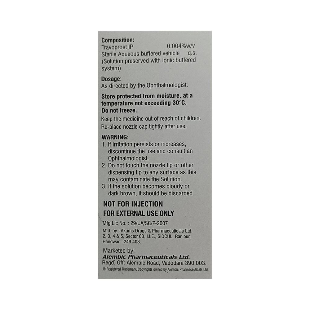 In Treatment of GlaucomaNew Travisight Eye Drop helps reduce pressure in your eyes (ocular hypertension) that can lead to an illness called glaucoma. It may be used alone or with other eye drops. Do not use it too often as that can make it less effective. You should only use it in the affected eye and take it regularly as prescribed by your doctor. If you stop taking it, the pressure in your eye will not be controlled. This could lead to a loss of sight.In Treatment of Ocular hypertensionNew Travisight Eye Drop belongs to a group of medicines called prostaglandin analogue. It is used to reduce pressure in your eyes. It increases the flow of fluid from inside the eye into the bloodstream thereby lowering the increased eye pressure. If the pressure in your eye is too high, it can damage your sight. Take it regularly as prescribed by your doctor. If you stop taking it, the pressure in your eye will not be controlled.show moreshow less