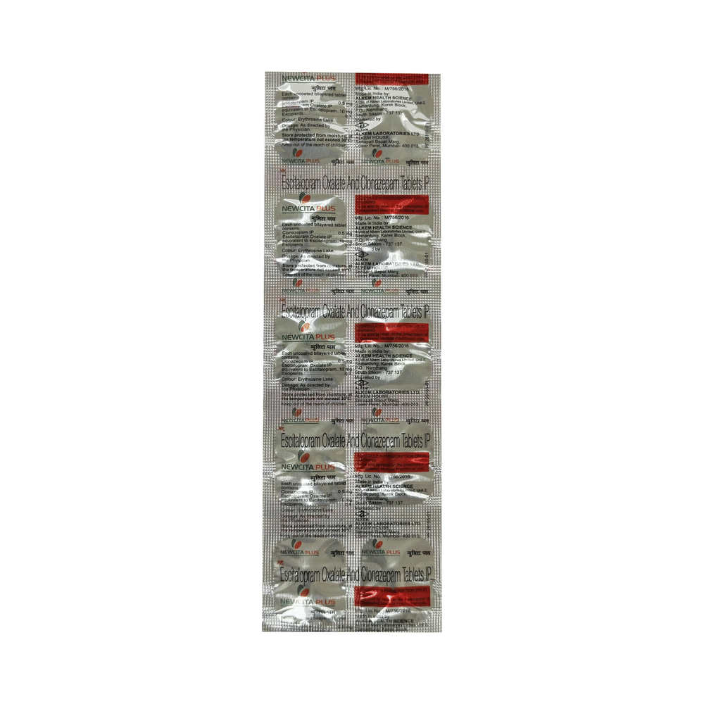 Newcita Plus Tablet is a prescription medicine used to treat anxiety disorder. It is the combination medicine that calms the brain by decreasing the abnormal and excessive activity of the nerve cells. It also works by increasing the level of a chemical messenger in the brain which improves mood. Newcita Plus Tablet can be taken with or without food. However, it is advised to take it at the same time each day as this helps to maintain a consistent level of medicine in the body. Take this medicine in the dose and duration advised by your doctor as it has habit-forming potential. If you miss a dose of this medicine, take it as soon as you remember. Finish the full course of treatment even if you feel better. It is important not to stop taking this medicine suddenly as it may cause withdrawal symptoms.Some common side effects of this medicine include delayed ejaculation, low sexual desire, vomiting, memory impairment, depression, and confusion. It may also cause dizziness and sleepiness. So, do not drive or do anything that requires mental focus until you know how this medicine affects you. It may cause weight gain or weight loss depending upon person to person. To prevent weight gain, you can eat a balanced diet and exercise regularly. On the other hand, weight loss can be prevented by increasing food portions in your diet. It is important to inform your doctor if you develop any unusual changes in mood as it can cause suicidal thoughts.Take caution while taking medicine if you are suffering from liver disease. Your doctor should also know about all other medicines you are taking as many of these may make this medicine less effective or change the way it works. Inform your doctor if you are pregnant, planning pregnancy or breastfeeding.