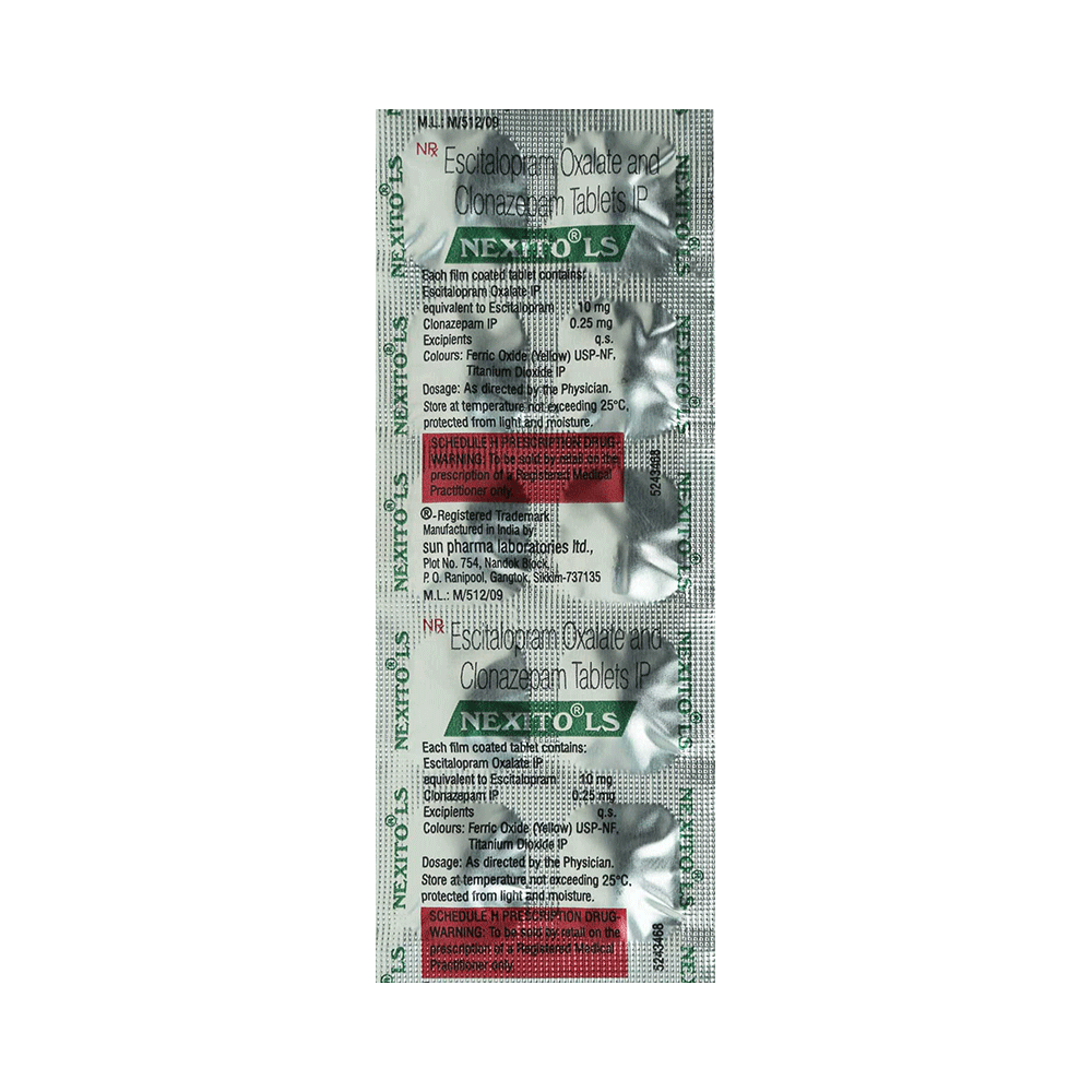 Nexito LS Tablet is a prescription medicine used to treat anxiety disorder. It is the combination medicine that calms the brain by decreasing the abnormal and excessive activity of the nerve cells. It also works by increasing the level of a chemical messenger in the brain which improves mood. Nexito LS Tablet can be taken with or without food. However, it is advised to take it at the same time each day as this helps to maintain a consistent level of medicine in the body. Take this medicine in the dose and duration advised by your doctor as it has habit-forming potential. If you miss a dose of this medicine, take it as soon as you remember. Finish the full course of treatment even if you feel better. It is important not to stop taking this medicine suddenly as it may cause withdrawal symptoms.Some common side effects of this medicine include delayed ejaculation, low sexual desire, vomiting, memory impairment, depression, and confusion. It may also cause dizziness and sleepiness. So, do not drive or do anything that requires mental focus until you know how this medicine affects you. It may cause weight gain or weight loss depending upon person to person. To prevent weight gain, you can eat a balanced diet and exercise regularly. On the other hand, weight loss can be prevented by increasing food portions in your diet. It is important to inform your doctor if you develop any unusual changes in mood as it can cause suicidal thoughts.Take caution while taking medicine if you are suffering from liver disease. Your doctor should also know about all other medicines you are taking as many of these may make this medicine less effective or change the way it works. Inform your doctor if you are pregnant, planning pregnancy or breastfeeding.