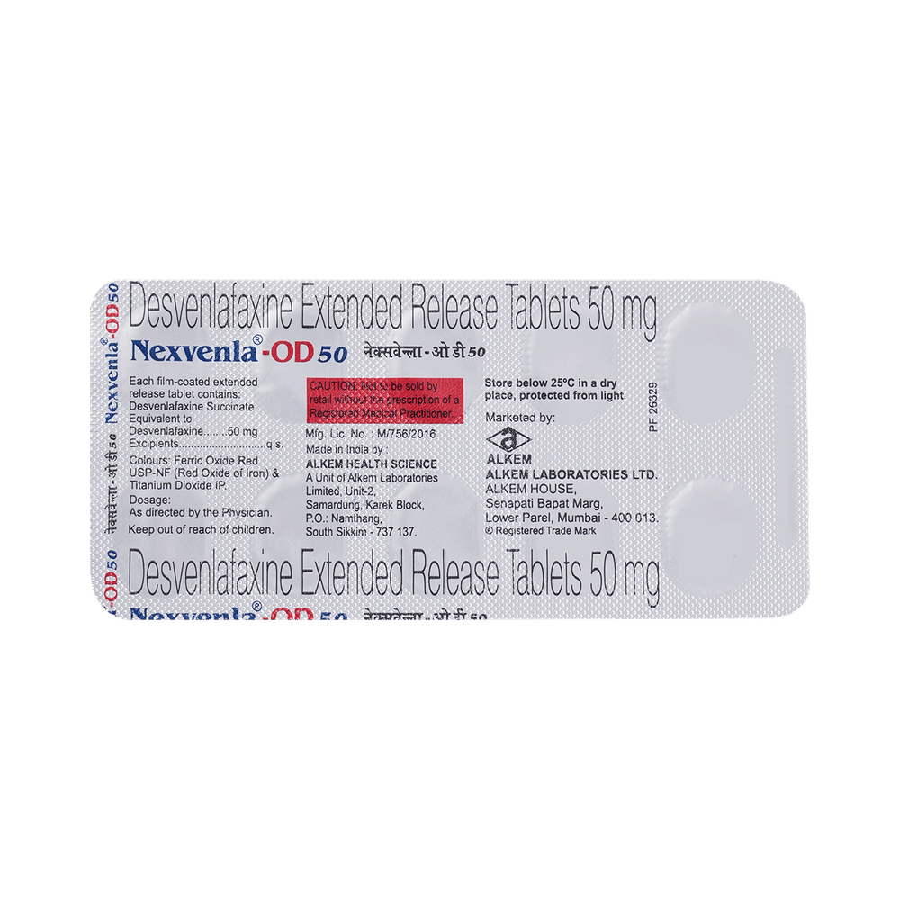 Nexvenla-OD 50 Tablet ER works by increasing the levels of chemical messengers (serotonin and noradrenaline), natural substances in the brain that help maintain mental balance.