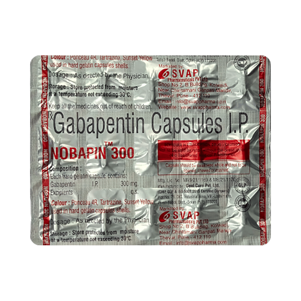 In Neuropathic painNobapin 300 Capsule is used to treat long-lasting (chronic) pain caused by nerve damage due to diabetes, shingles or spinal cord injury. It reduces pain and its associated symptoms such as mood changes, sleep problems, and tiredness. It is thought to work by interfering with pain signals that travel through the damaged nerves and the brain. Taking this medicine regularly will improve your physical and social functioning and overall quality of life. It takes a few weeks to work so you need to take it regularly even if you feel it is not doing any good. Once your symptoms have gone you should still keep taking the medicine until your doctor advises you to stop.In Epilepsy/SeizuresNobapin 300 Capsule belongs to a group of medicines called anticonvulsants which is used to treat some forms of epilepsy in adults. It is thought to work by slowing down nerve impulses in the brain which cause seizures (fits). It helps reduce symptoms such as confusion, uncontrollable jerking movements, loss of awareness and fear or anxiety. It will help you go about your daily activities with more confidence and may allow you to do some activities that you would otherwise be forbidden or scared to do (such as swimming and driving). It can take a few weeks for this medicine to work and during this time you may still have seizures. Do not stop using this medicine even if you feel well, until your doctor advises you to. Missing doses may trigger a seizure. show moreshow less