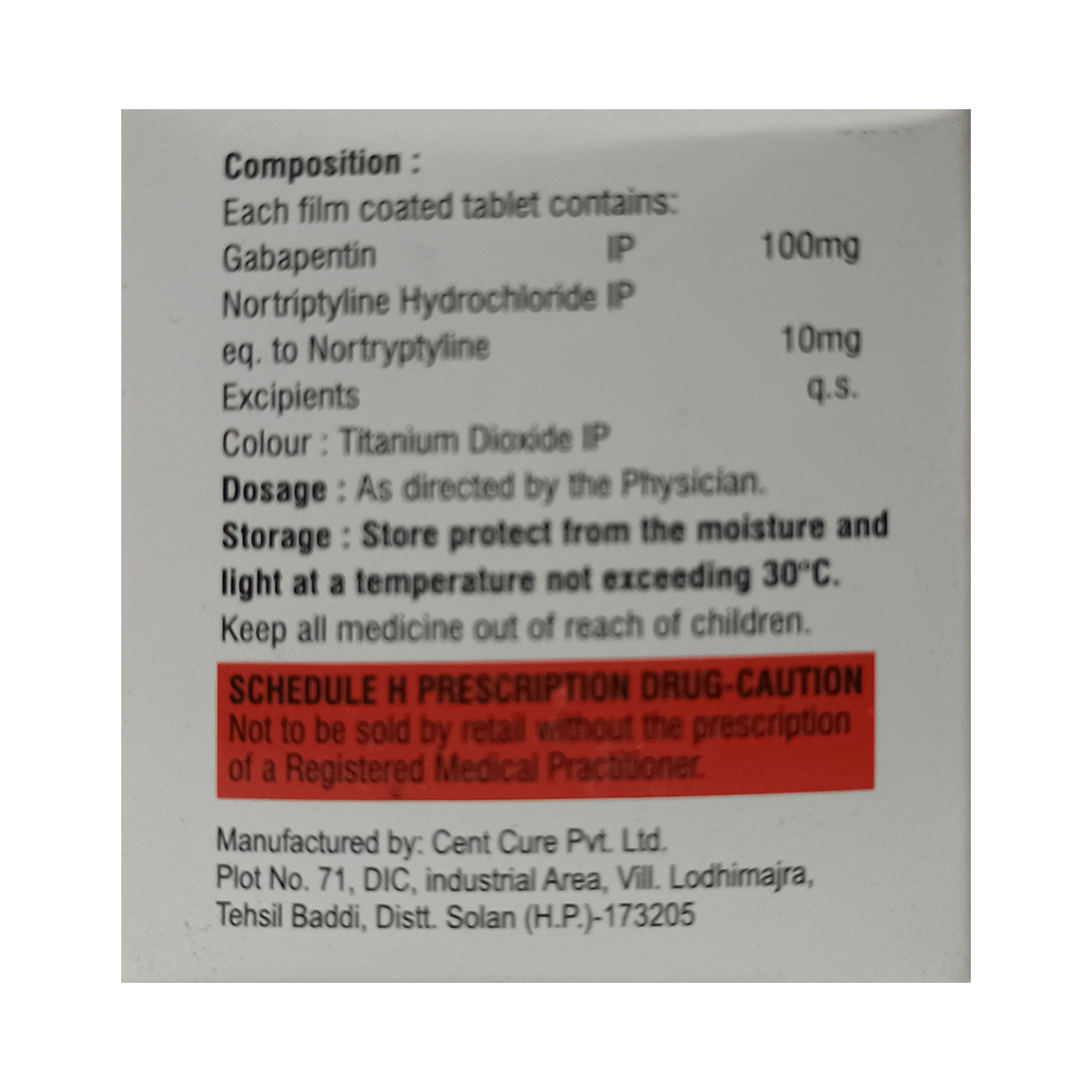 Salt Composition: Gabapentin (100mg) + Nortriptyline (10mg)