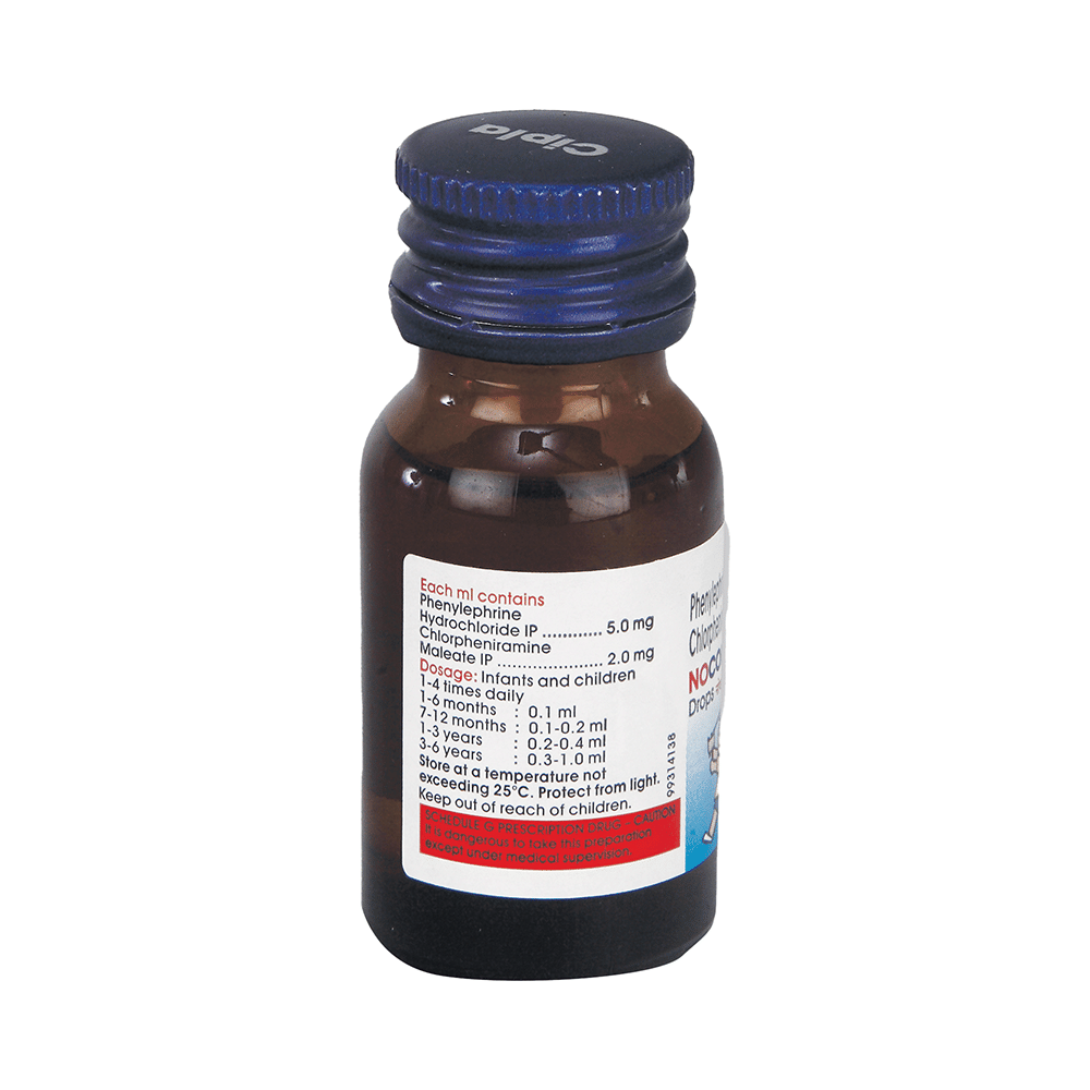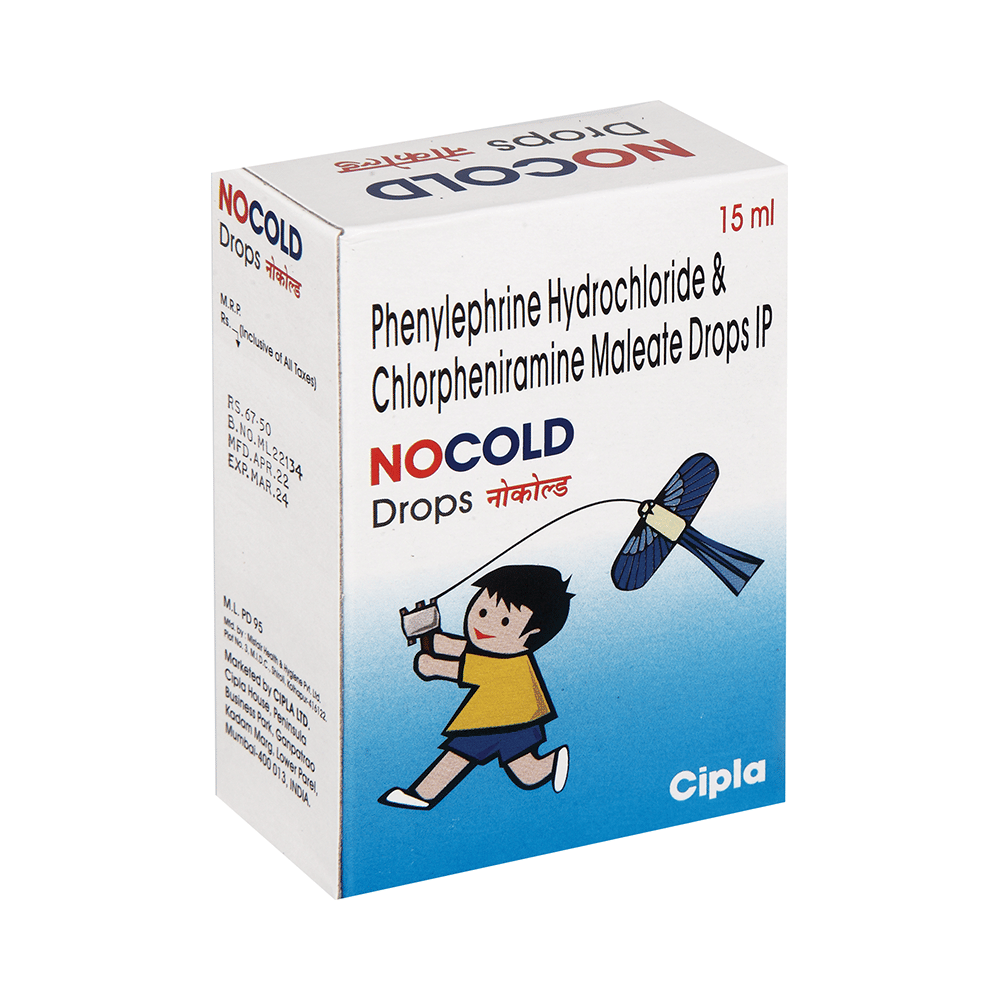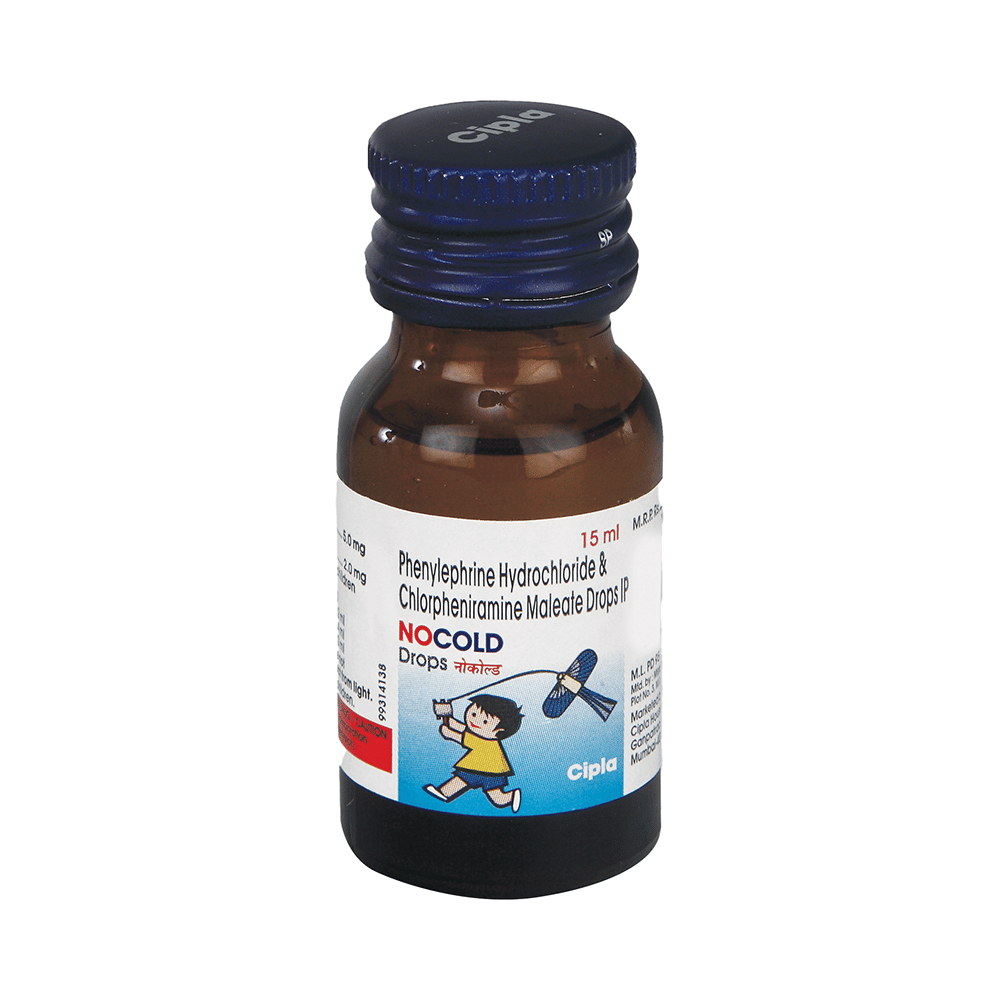 NOcold Drop is a combination medicine used for the symptomatic treatment of common cold in children. It helps relieve discomfort caused by a runny nose, blocked nose, and sneezing, allowing the child to breathe more easily and feel better. NOcold Drop may be given to your child with or without food. Always follow the exact dose and duration prescribed by the doctor. The dosage will depend on your child’s age, weight, and the severity of symptoms. Do not stop the medicine early, even if your child seems to be feeling better, unless advised by the doctor.Common side effects may include nausea, vomiting, or headache. These are usually mild and temporary. However, if you notice anything unusual or are concerned about how your child is responding to the medicine, consult your doctor promptly. This medicine may also cause drowsiness, so avoid engaging your child in activities that require alertness until you know how it affects them.Make sure your child stays well hydrated while taking NOcold Drop. Inform your doctor if your child has any history of liver or kidney problems, as the dose may need to be adjusted accordingly.Note: As per the Ministry of Health and Family Welfare, NOcold Drop should not be used in children below 4 years of age.