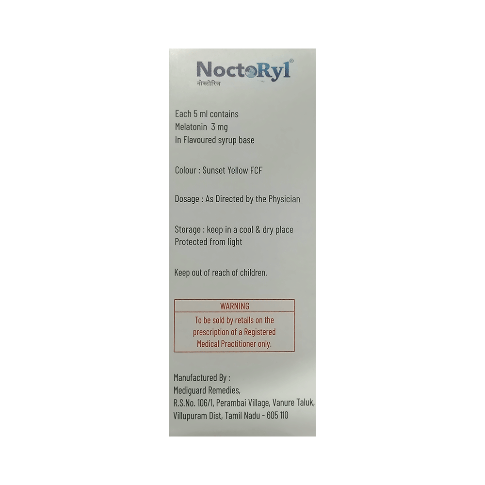 Noctoryl Syrup is a medicine used in the treatment of insomnia and jet lag (a sleep disorder due to frequent travel to different time zones). It reduces jet lag symptoms such as irritability, indigestion, daytime tiredness, and sleep disturbances. Noctoryl Syrup helps to synchronize the body’s biological day-night rhythm. It should be taken either 2 hours before or 2 hours after food, preferably at bedtime. However, it is advised to take it at a fixed time each day to maintain a consistent level of medicine in the blood. You should never skip any doses and finish the full course of treatment even if you feel better. This medicine should not be stopped suddenly without talking to your doctor.Some common side effects of this medicine include headache and drowsiness. It even causes dizziness and sleepiness, so do not drive or do anything that requires mental focus until you know how this medicine affects you. It is important to note that this medicine should not be used for daily naps.Consult your doctor before taking this medicine if you are suffering from any liver or kidney problems. You should avoid smoking and alcohol while using this medicine. Pregnant and breastfeeding mothers should not use this medicine. However, if the need arises, please consult your doctor before using it.