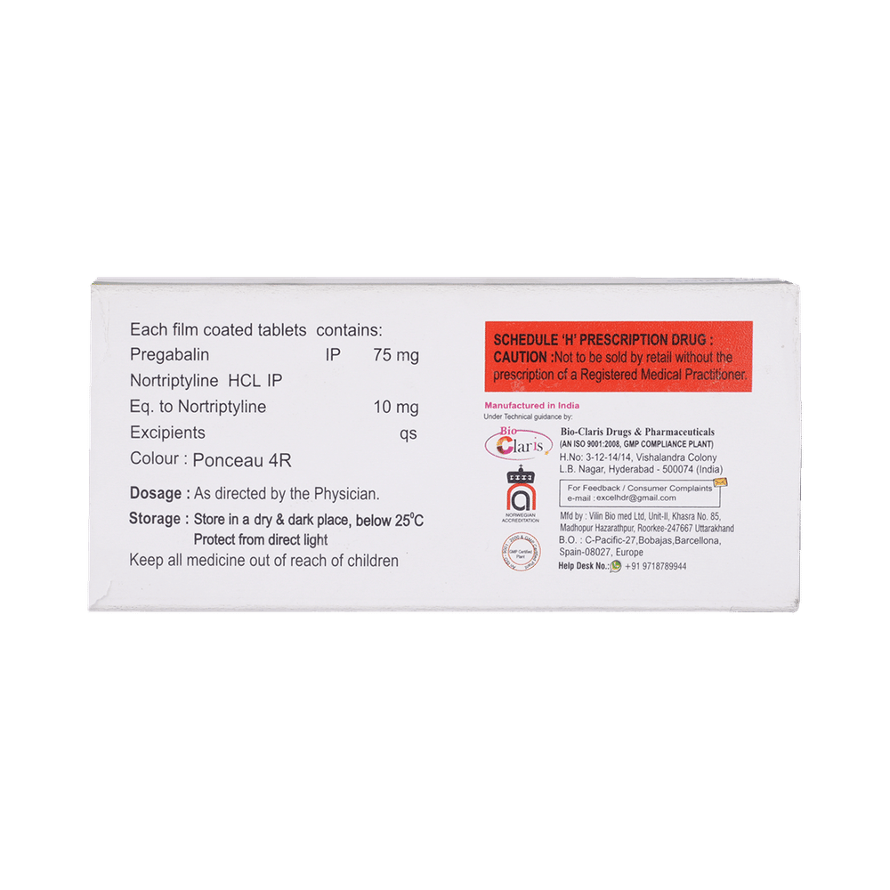 Salt Composition: Pregabalin (75mg) + Nortriptyline (10mg)