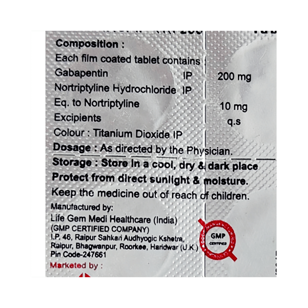 Salt Composition: Gabapentin (200mg) + Nortriptyline (10mg)