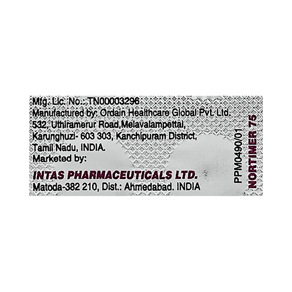 Nortimer 75mg Tablet is a tricyclic antidepressant. It increases the levels of chemical messengers in the brain that help in regulating the mood and treat depression.