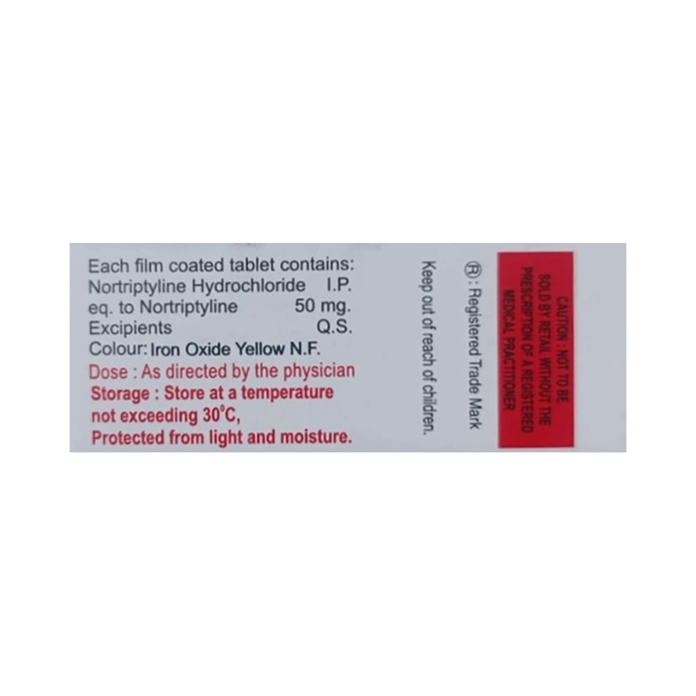 NorTIN 50 Tablet is a tricyclic antidepressant. It increases the levels of chemical messengers in the brain that help in regulating the mood and treat depression.