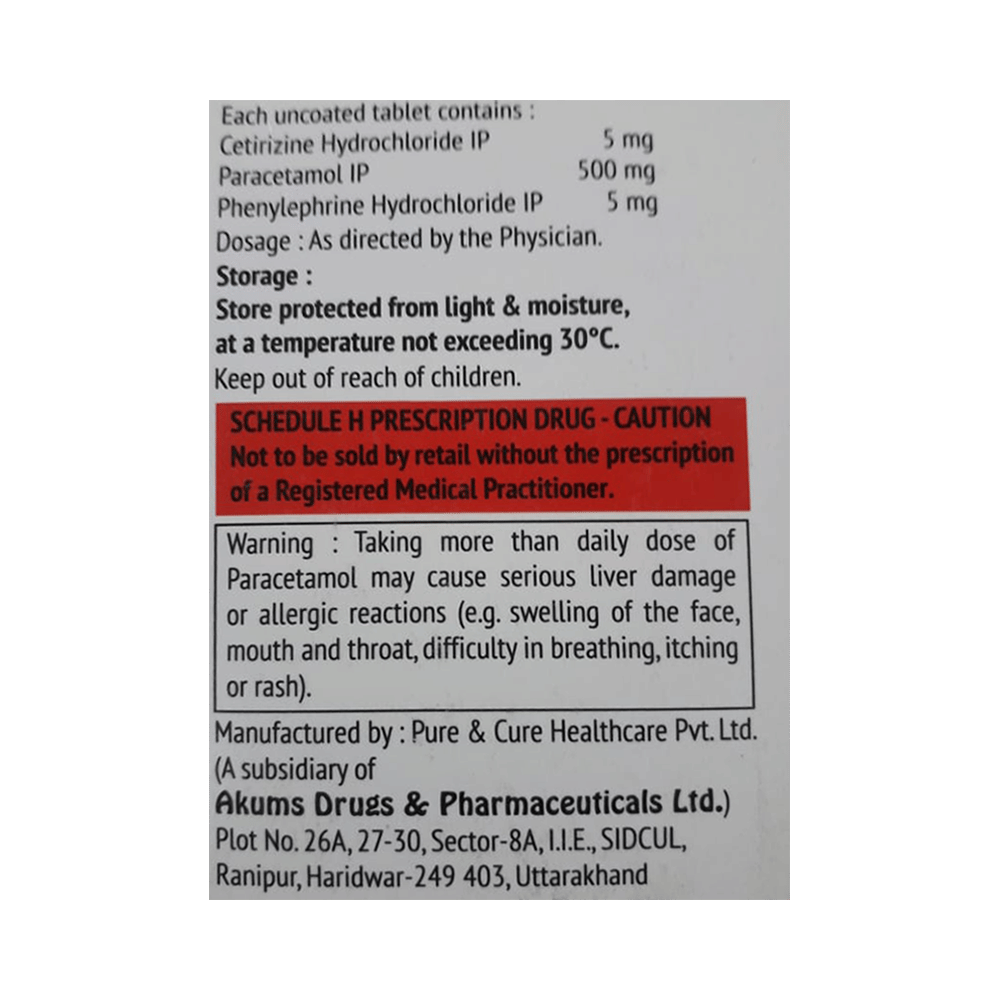 Salt Composition: Cetirizine (5mg) + Paracetamol (500mg) + Phenylephrine (5mg)