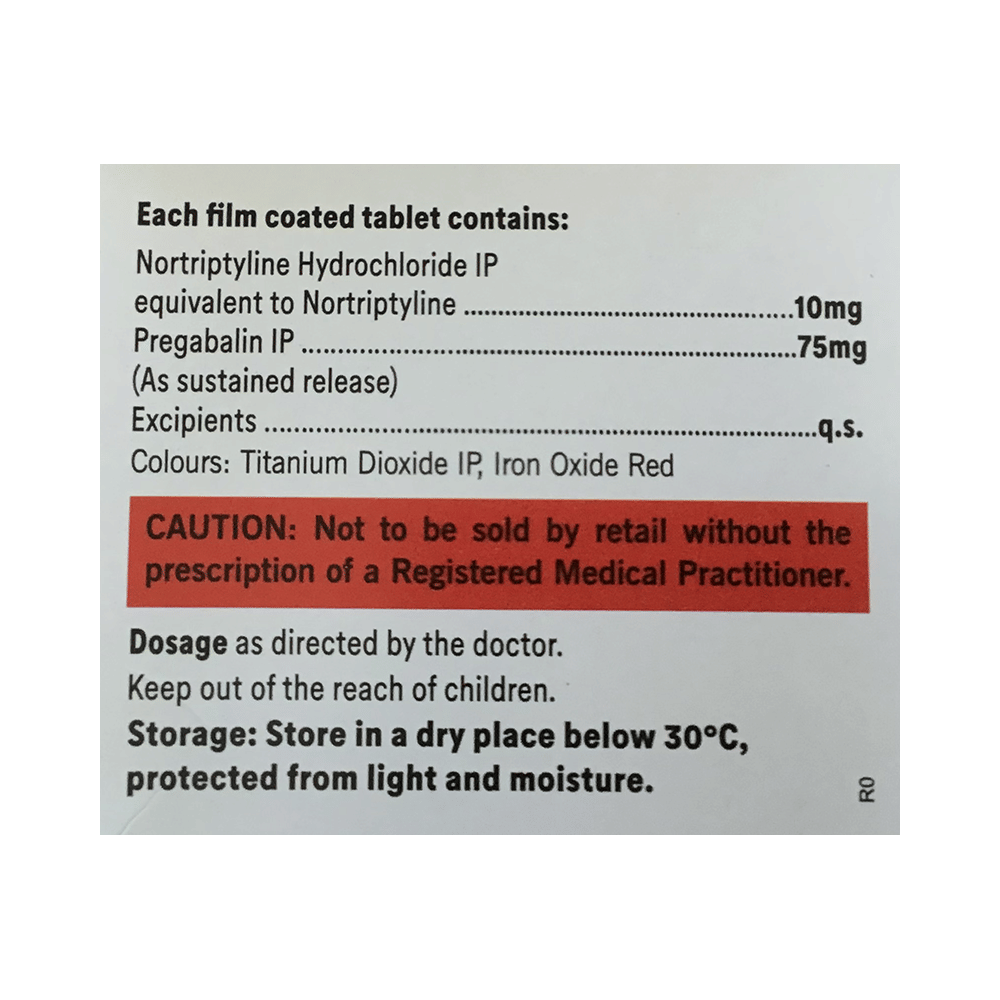 Salt Composition: Pregabalin (75mg) + Nortriptyline (10mg)