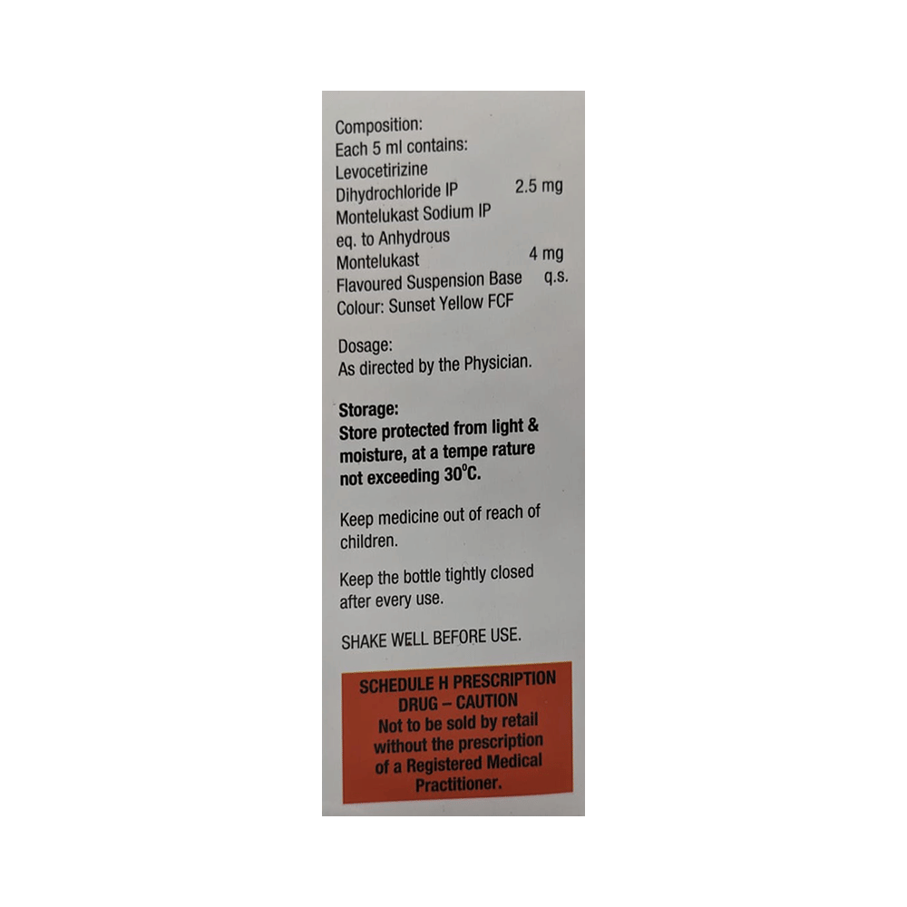 Salt Composition: Levocetirizine (2.5mg/5ml) + Montelukast (4mg/5ml)