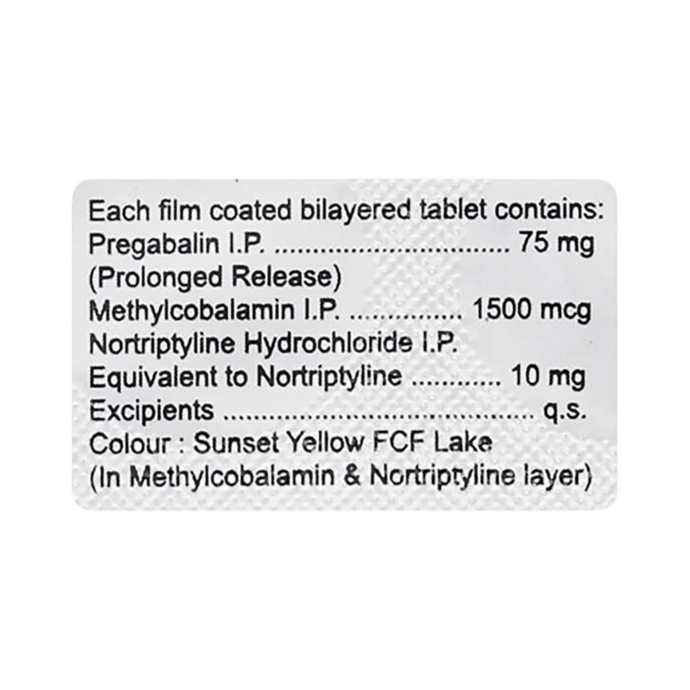 Salt Composition: Pregabalin (75mg) + Nortriptyline (10mg) + Methylcobalamin (1500mcg)