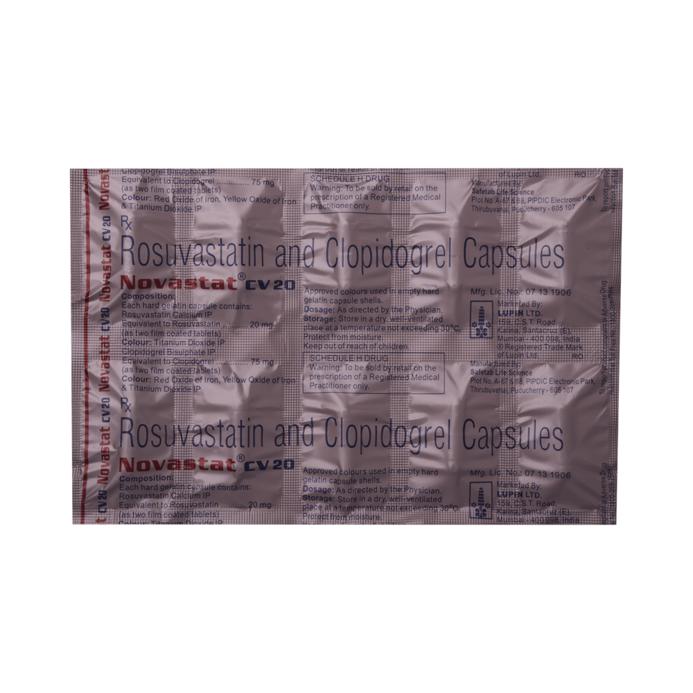 In Prevention of Heart attackIf your blood pressure is controlled you are less at risk of having a heart attack or stroke. Novastat CV 20 Capsule reduces the chances of heart diseases and helps you remain healthier for longer. Along with taking Novastat CV 20 Capsule, make appropriate lifestyle changes, such as eating healthy and staying active, to maintain your blood pressure in the normal range.In Prevention of Angina (heart-related chest pain)Novastat CV 20 Capsule prevents the formation of blood clot. This makes blood flow more easily around your body and makes sure that your heart is getting a good supply of oxygen. Altogether, it reduces the risk of a chest pain caused by angina. This medicine might help increase your ability to exercise and go about your daily life more easily. You should take it regularly and as long as it is prescribed for it to work effectively.In Prevention of StrokeHigh blood pressure might cause blood clots which blocks the flow of blood to the brain causing stroke. Novastat CV 20 Capsule helps lower your blood pressure and thus reduce the risk of a stroke. Along with taking Novastat CV 20 Capsule, eat a healthy diet, remain physically active and minimise stress to help get your blood pressure back into the normal range.show moreshow less