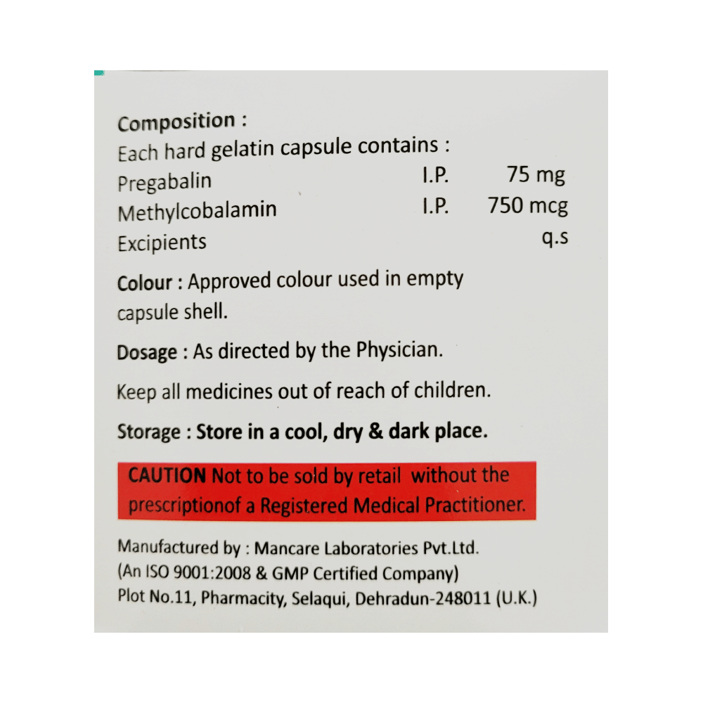 Salt Composition: Methylcobalamin (750mcg) + Pregabalin (75mg)