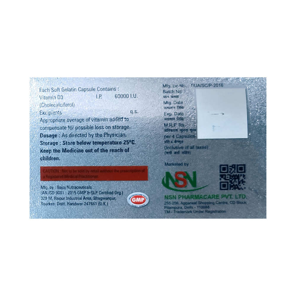 NS-D3 60K Softgel Capsule is a form of vitamin D. It raises vitamin D levels in your blood. This, in turn, increases calcium levels in your blood by helping you absorb more calcium from food.