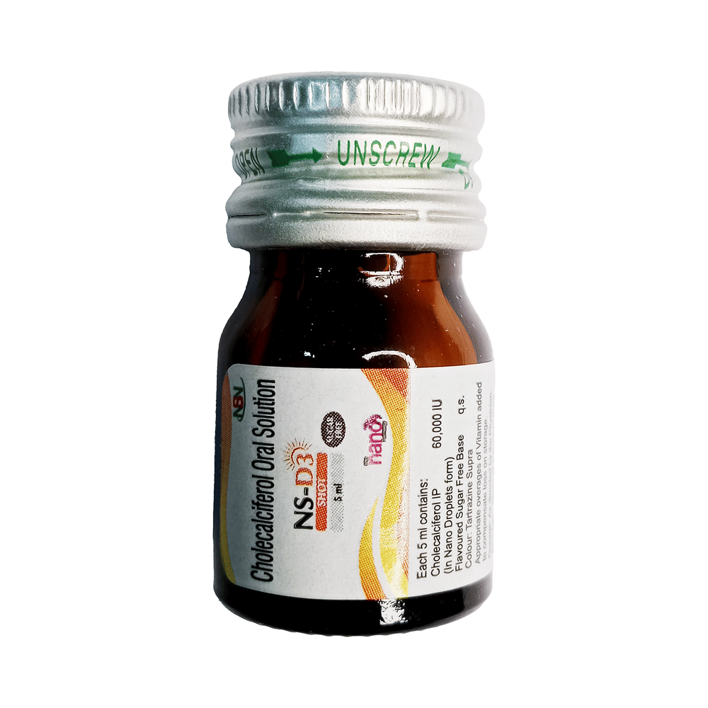 NS D3 Shot Sugar Free is used in the treatment of vitamin D deficiency and osteoporosis. It helps the body to absorb calcium. Calcium is essential for maintaining strong and healthy bones. It is used when your diet does not provide enough calcium. NS D3 Shot Sugar Free should be taken as directed by your doctor. It is best taken with or after food, as this helps your body absorb it, and you should take it regularly to get the most benefits. If you are using it to treat osteoporosis, you will also be prescribed other medicines. This medicine may be only part of a complete treatment program that includes making changes to your diet and taking calcium and vitamin supplements. Learn about the foods you should eat to ensure you get enough calcium and vitamin D.NS D3 Shot Sugar Free has few side effects, and none are common. If you take too much, you may feel weakness, muscle pain, or a metallic taste in your mouth. If you experience any such side effects, speak with your doctor. They may be able to help you reduce or treat the symptoms.Before taking this medicine, tell your doctor if you have high calcium levels in your blood or if you have any heart, kidney, or liver disease. Some other medicines can decrease the absorption of vitamin D3, so let your doctor know about all the other medicines you are taking to make sure you are safe. This medicine may help during pregnancy when your body needs more vitamin D, but too much could harm your baby. Discuss it with your doctor.