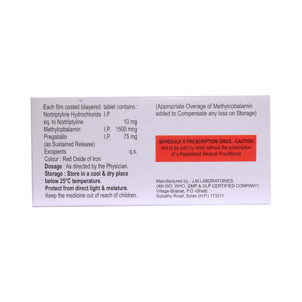 Salt Composition: Pregabalin (75mg) + Nortriptyline (10mg) + Methylcobalamin (1500mcg)