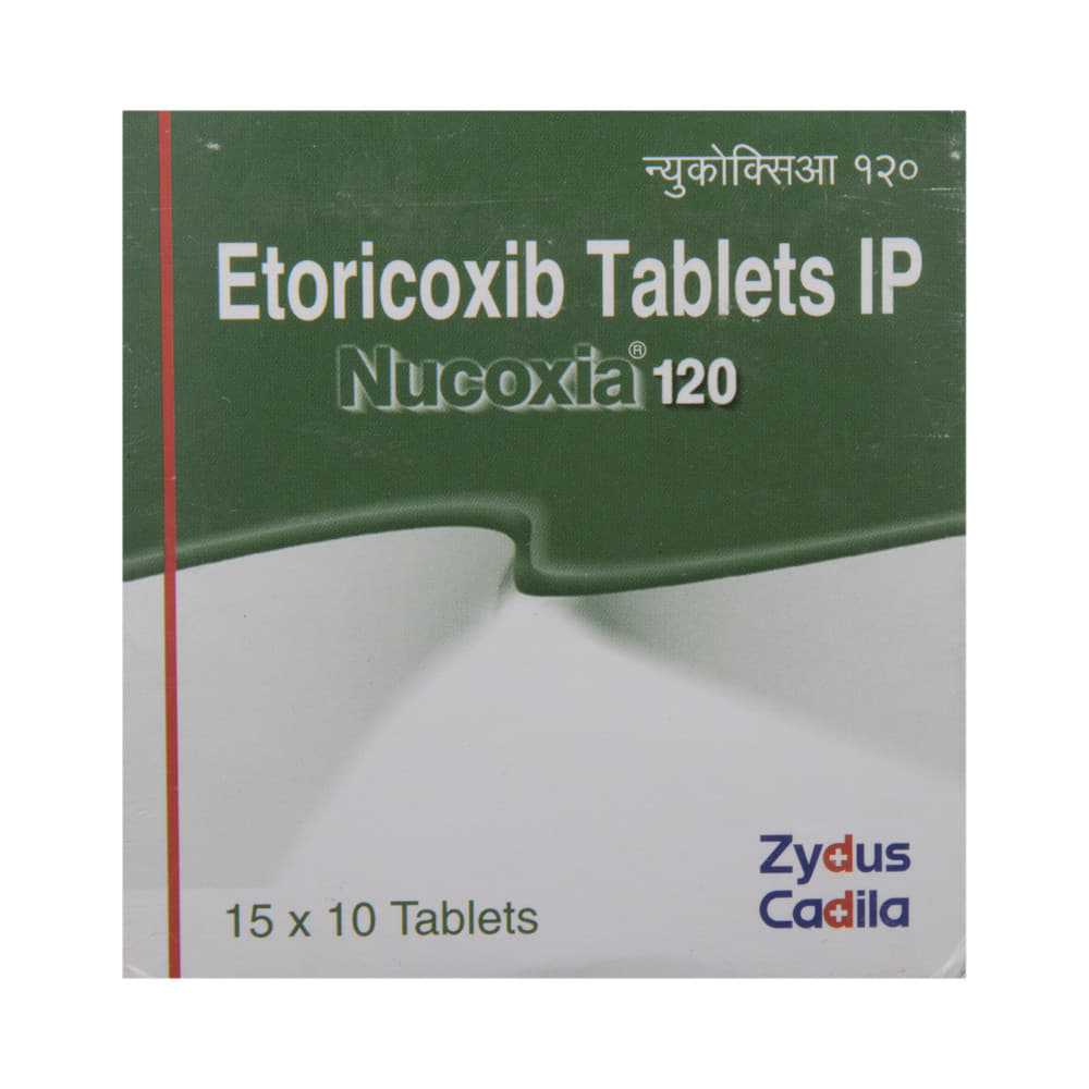 Nucoxia 120 Tablet is a pain-relieving medicine. It is used for relieving moderate pain and swelling of joints associated with different forms of gout and arthritis. It effectively alleviates pain, redness, and swelling. Nucoxia 120 Tablet should be taken in the dose and duration as advised by your doctor. Nucoxia 120 Tablet may be taken with or without food. Do not take more than prescribed dose.Flu-like symptoms, indigestion, stomach pain, diarrhea, indigestion, edema, headache, palpitations, and hypertension are some of the side effects that might be seen with this medicine. It may also cause dizziness and fatigue. You should not drive or do anything requiring concentration until you know how it affects you.Nucoxia 120 Tablet is potentially unsafe to take it during pregnancy. Inform your doctor if you have a history of stomach ulcers, heart diseases, high blood pressure, and liver or kidney disease.