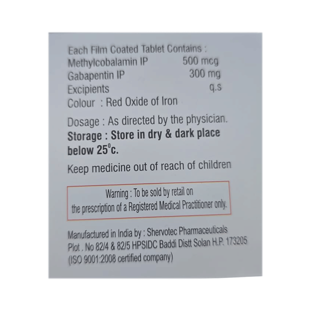 Salt Composition: Gabapentin (300mg) + Methylcobalamin (500mcg)
