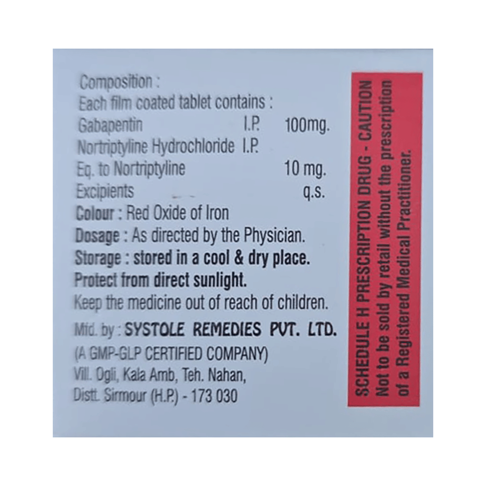 Salt Composition: Gabapentin (100mg) + Nortriptyline (10mg)