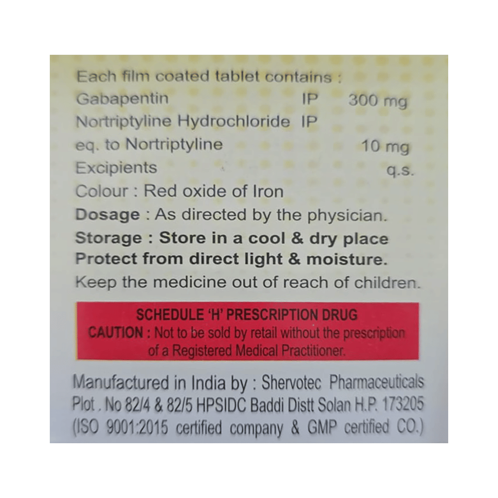 Salt Composition: Gabapentin (300mg) + Nortriptyline (10mg)