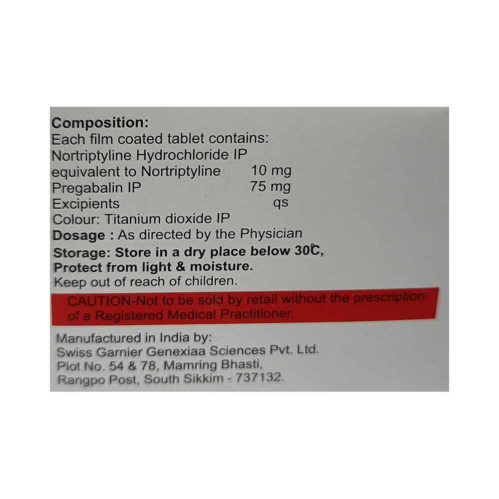 Salt Composition: Pregabalin (75mg) + Nortriptyline (10mg)
