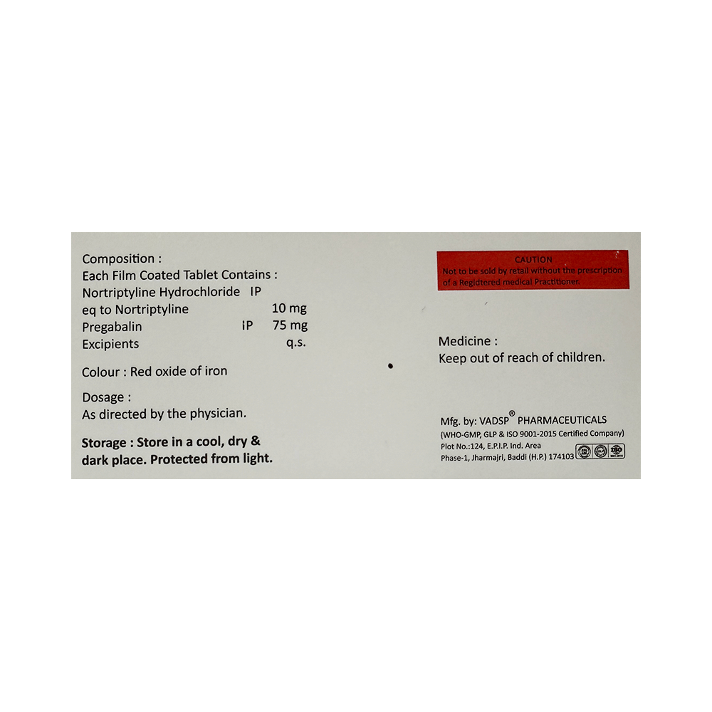 Salt Composition: Pregabalin (75mg) + Nortriptyline (10mg)