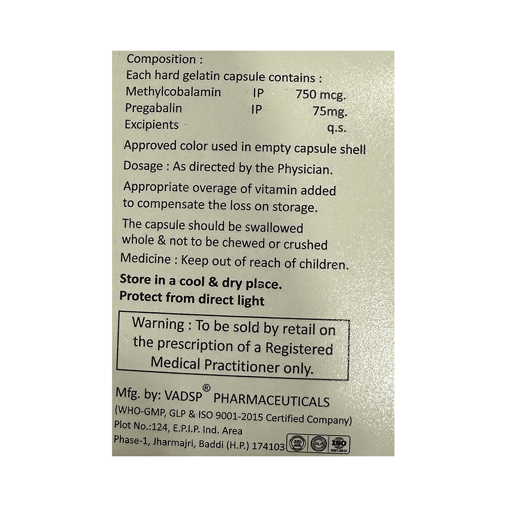 Salt Composition: Methylcobalamin (750mcg) + Pregabalin (75mg)