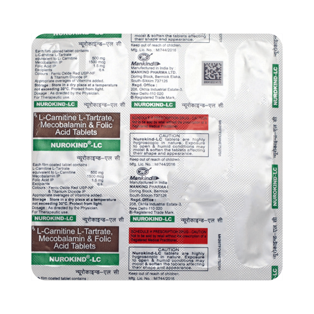 Nurokind-LC Tablet is a combination of three nutritional supplements: Levo-carnitine, Methylcobalamin, and Folic Acid which replenish the body's stores of important nutrients.