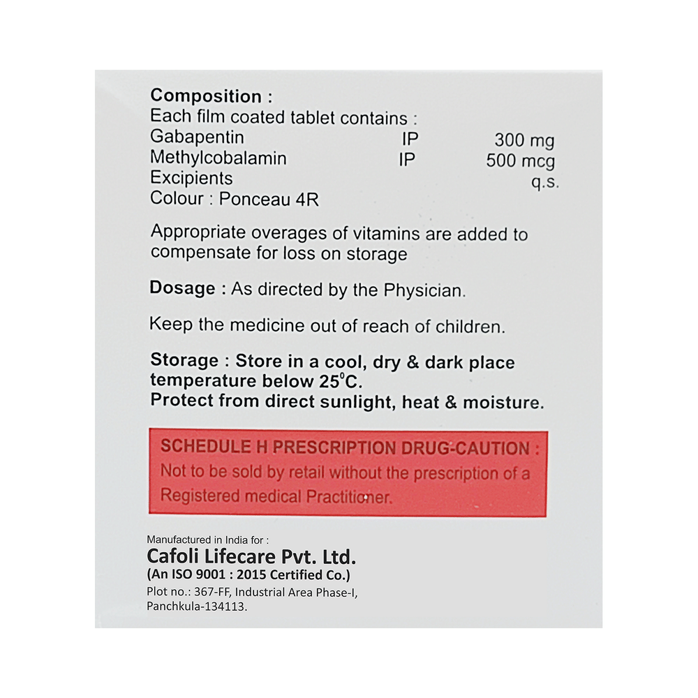 Salt Composition: Gabapentin (300mg) + Methylcobalamin (500mcg)