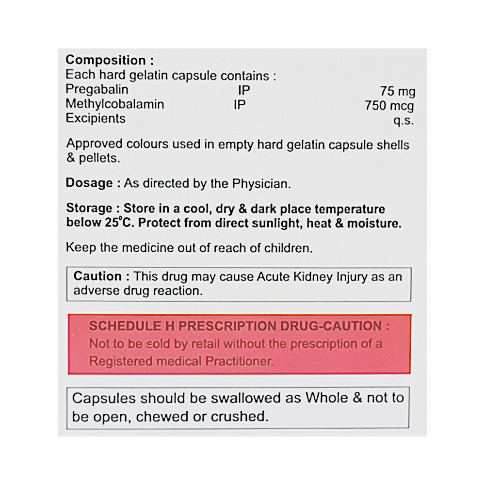 Salt Composition: Methylcobalamin (750mcg) + Pregabalin (75mg)