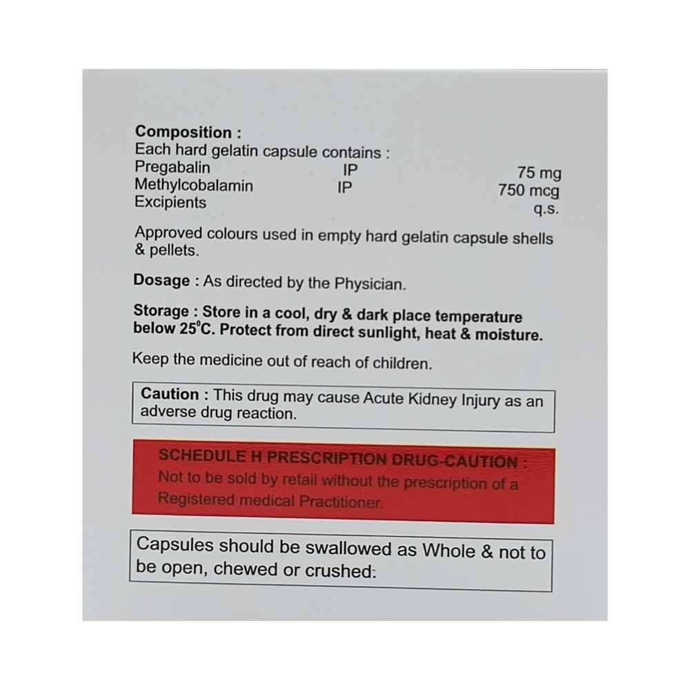 Salt Composition: Methylcobalamin (750mcg) + Pregabalin (75mg)