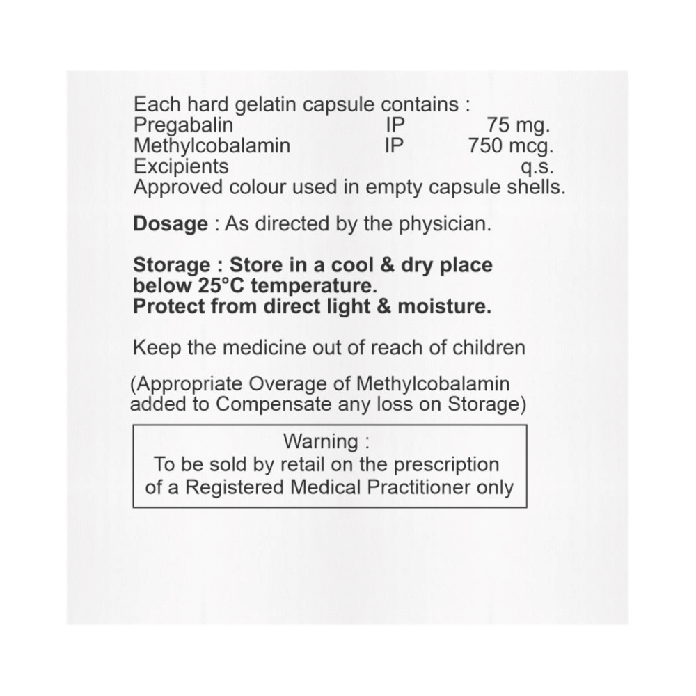 Salt Composition: Methylcobalamin (750mcg) + Pregabalin (75mg)