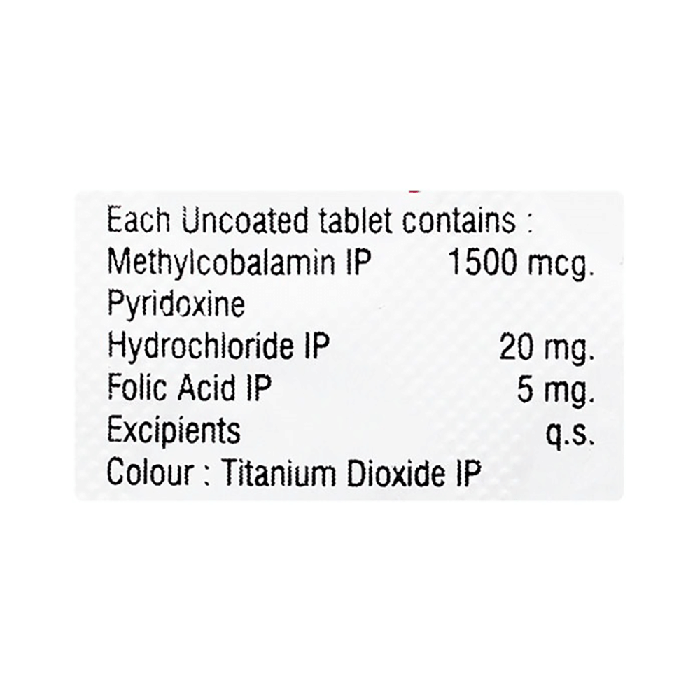 Salt Composition: Methylcobalamin (1500mcg) + Vitamin B6 (Pyridoxine) (20mg) + Folic Acid (5mg)