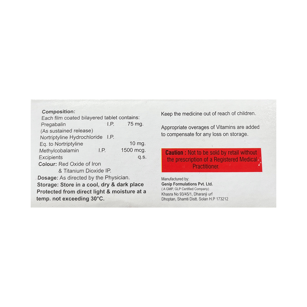 Salt Composition: Pregabalin (75mg) + Nortriptyline (10mg) + Methylcobalamin (1500mcg)