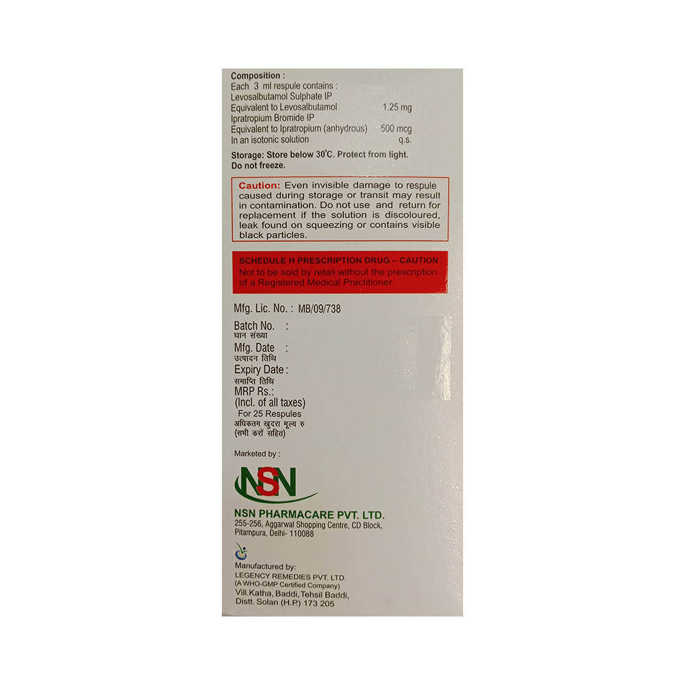 Salt Composition: Levosalbutamol (1.25mg) + Ipratropium (500mcg)