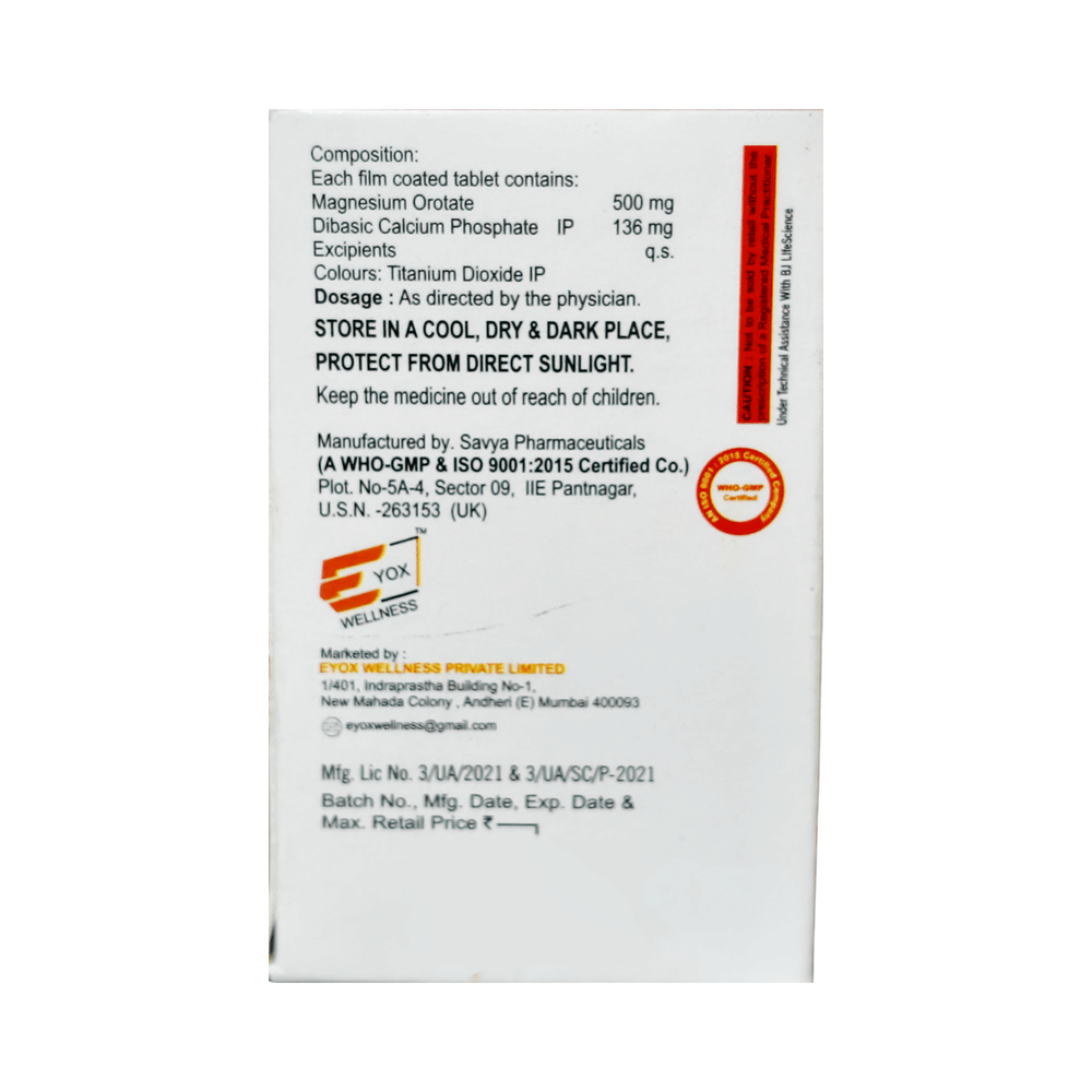Salt Composition: Dibasic Calcium Phosphate (136mg) + Magnesium Orotate (500mg)