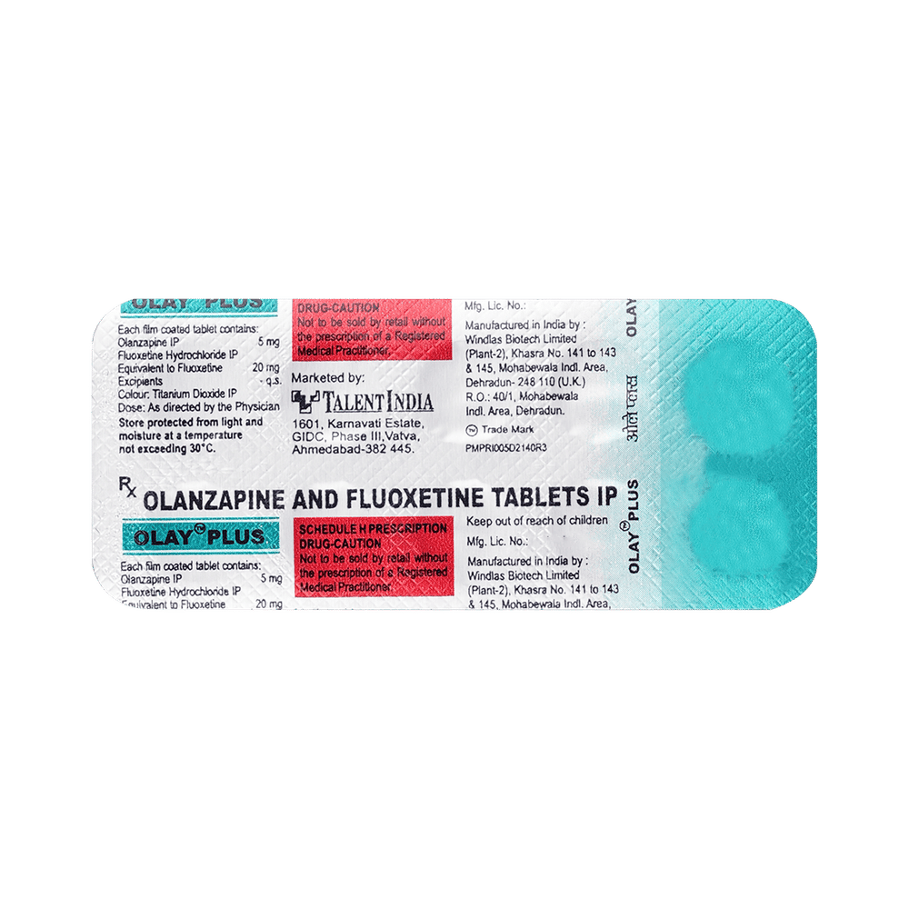 Olay Plus Tablet is a combination of two medicines: Fluoxetine and Olanzapine. They work by increasing the activity of certain chemicals called serotonin, norepinephrine, and dopamine in the brain. These chemicals help relieve the symptoms of depression associated with bipolar depression.
