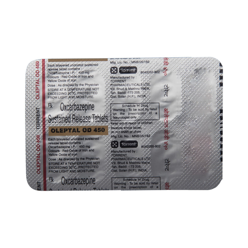 In Epilepsy/SeizuresOleptal OD 450 Tablet SR is an anticonvulsant (or anti-epileptic) medicine that works by decreasing the nerve impulses which cause the seizures. By controlling the frequency of seizures, it will help you go about your daily activities with more confidence. It helps reduce symptoms such as confusion, uncontrollable jerking movements, loss of awareness, and fear or anxiety.This medicine is not associated with any physical or psychological dependence (addiction) but it should not be stopped suddenly. It must be taken regularly as prescribed to be effective. Missing doses may trigger a seizure.