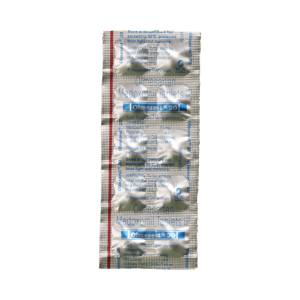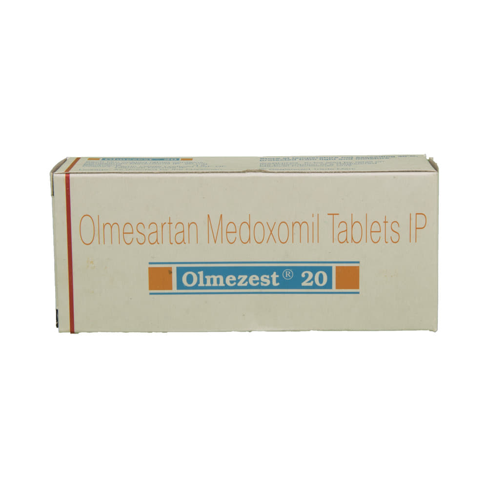 OLmezest 20 Tablet is a medicine used in the treatment of hypertension (high blood pressure). Lowering blood pressure helps prevent future heart attacks and strokes. This medicine is also effective in preserving kidney function in patients with diabetes. OLmezest 20 Tablet may be prescribed either alone or in combination with other medicines. It may be taken with or without food during the day or at night. However, try to take it at about the same time each day to get the maximum benefit. It is important to continue taking it regularly even if you feel well or if your blood pressure is controlled. Most people with high blood pressure do not feel ill, but if you stop taking this medicine, your condition could get worse.Making some changes in your lifestyle will also help lower your blood pressure. These may include regular exercise, losing weight, smoking cessation, reducing alcohol intake, and reducing the amount of salt in your diet as advised by your doctor. This medicine is tolerated well by most patients and has few side effects. However, some may experience side effects like dizziness, cough, diarrhea, indigestion, nausea, and a runny nose, particularly after the first dose. Let your doctor know if this bothers you or does not go away.Before taking this medicine, let your doctor know if you have any kidney or liver problems. Pregnant or breastfeeding mothers should not take this medicine. Your doctor may check your kidney function, blood pressure, and potassium levels in your blood at regular intervals while you are taking this medicine.