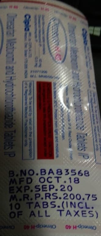 Salt Composition: Hydrochlorothiazide (12.5mg) + Olmesartan Medoxomil (40mg)