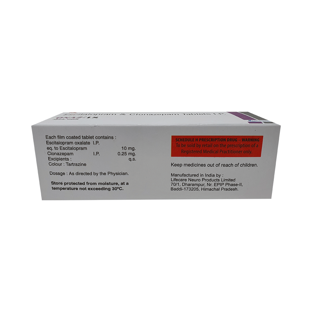 Salt Composition: Clonazepam (0.25mg) + Escitalopram Oxalate (10mg)