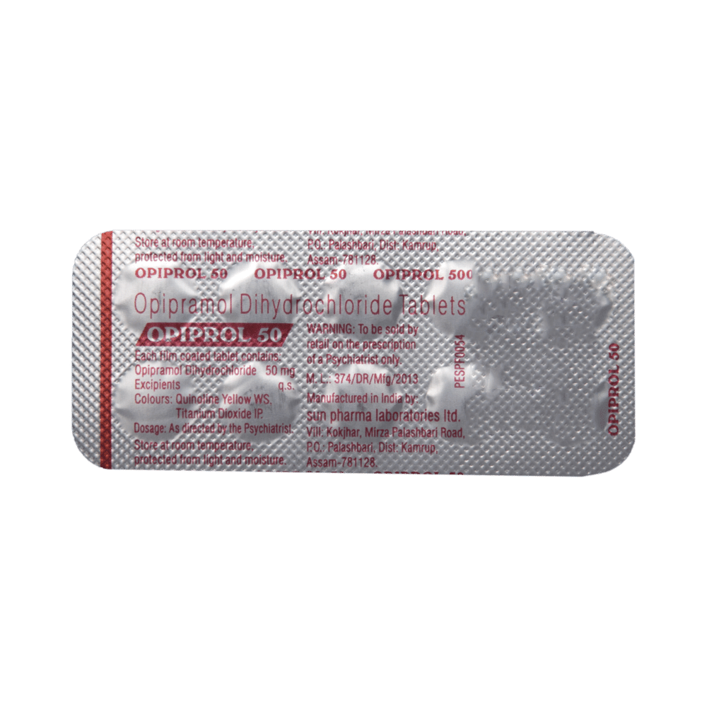 OPIprol 50 Tablet is a prescription medicine used in the treatment of anxiety disorders. It also helps in restoring the messengers that elevate the mood. OPIprol 50 Tablet may be taken with or without food. However, it is advised to take it at a fixed time each day to maintain a consistent level of medicine in the blood. If you have missed a dose, take it as soon as you remember and finish the full course of treatment even if you feel better. This medication must not be stopped suddenly without talking to your doctor, as it may worsen your symptoms.Some common side effects of this medicine include nasal congestion, fatigue, and dryness in the mouth. Initially, this medicine may cause a sudden drop in blood pressure when you change positions, so it is better to rise slowly if you have been sitting or lying down. It even causes dizziness and sleepiness, so do not drive or do anything that requires mental focus until you know how this medicine affects you.It is important to inform your doctor if you develop any unusual mood changes, as it may lead to suicidal thoughts. If you have been taking this medicine for a long time, regular monitoring of liver function may be required. Inform your doctor if you have any health conditions associated with the liver, kidneys, or heart. Tell your doctor if you are pregnant, planning a pregnancy, or breastfeeding before taking OPIprol 50 Tablet.