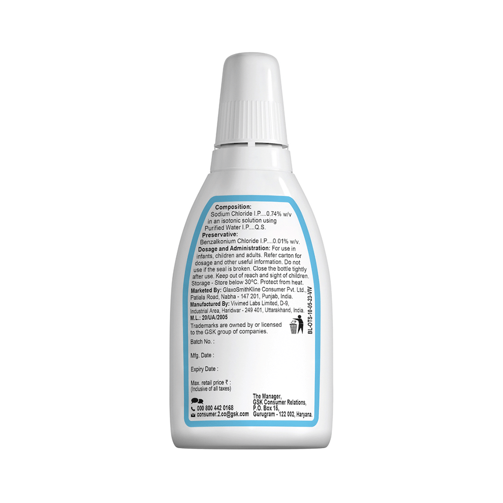 Otrivin Saline comprises of purified salt solution. It is used to treat nasal congestion (blocked nose). It moisturizes and loosens the mucus inside of the nose and provides rapid relief from nasal congestion. Otrivin Saline works by moisturizing the inner surface of the nose. It helps in providing relief from stuffy nose due to common cold or allergies. This medicine is for external use only. You should use it in a dose and duration as advised by your doctor.Before using this medicine, check the label. You have to tilt your head as far back as possible. Hold the dropper close to the nose. Make sure that you do not touch the nozzle. Squeeze the dropper gently so that the medicine gets placed in the nose. After few minutes, you can bend your head forward.It is generally safe with little or no side effects. However, it might cause nasal irritation at the time of application. Before using this medicine, inform your doctor if you are on any medication or are allergic to this medication. Also, inform your doctor if you are pregnant or breastfeeding. Please consult your doctor, if you miss any dose.